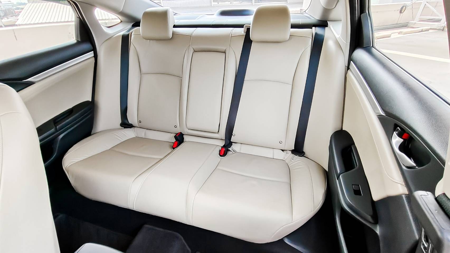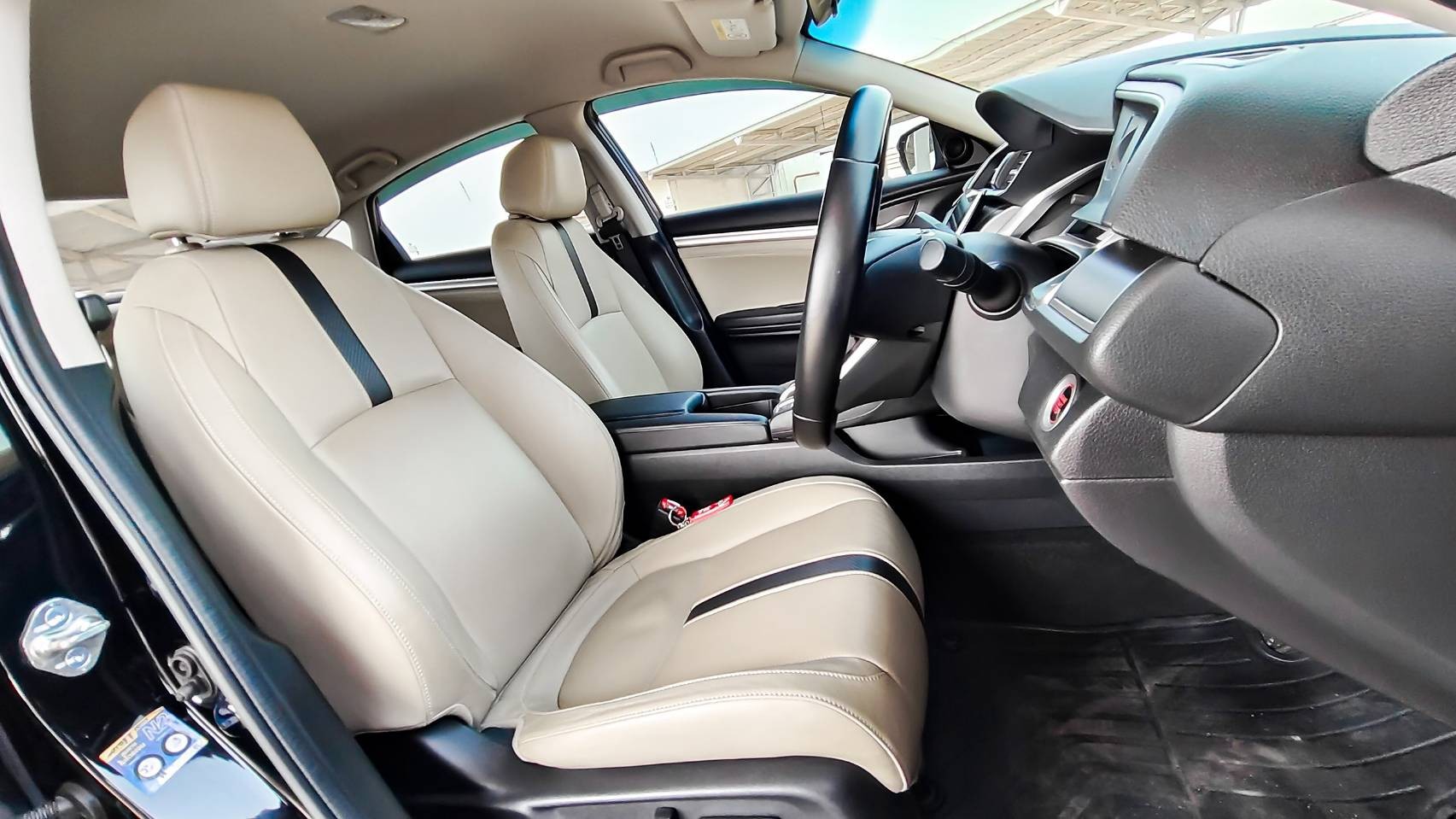 ✔ เบาะนั่ง วัสดุเป็นหนังสีครีมตัดดำ